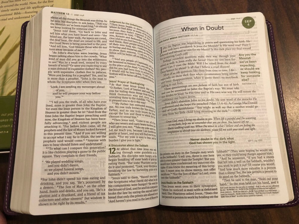Personalized Nlt Our Daily Bread Devotional Bible Purple Leatherlike Custom Imprinted